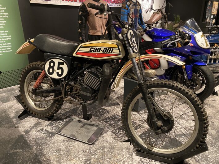 Buckin’ Bronco: It is fitting that Buck Murphy’s factory Can-Am is included in the exhibit. Buck was a big, powerful Northwest rider who followed the AMA National Series.