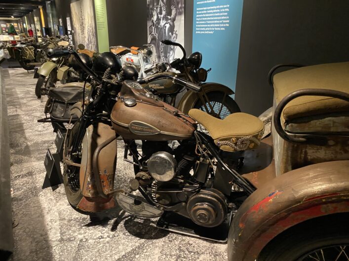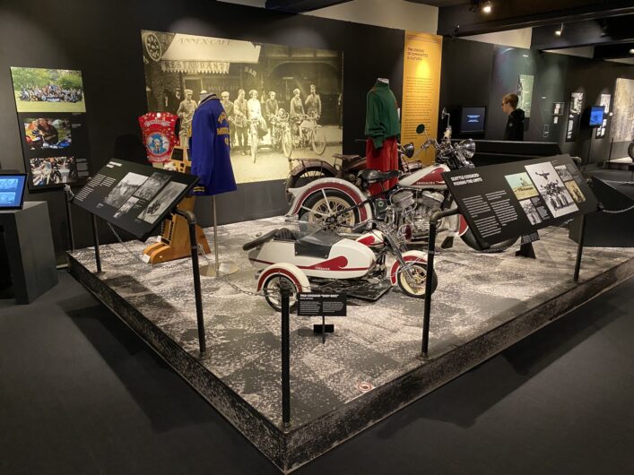Seattle’s Museum of History & Industry has a motorcycle exhibit running through April 26, 2026. The Kickstands Up! exhibit is worth making the effort to visit. It covers a lot of ground from the commercial use of motorcycles to racing with lots of interesting tidbits in-between. And once you finish soaking in Kickstands Up!, you can spend a few more hours checking out the rest The Museum of History & Industry (or MOHAI, as the locals like to call it). Plus, the gift shop has great Kickstands Up! T-shirts, postcards and other cool stuff.