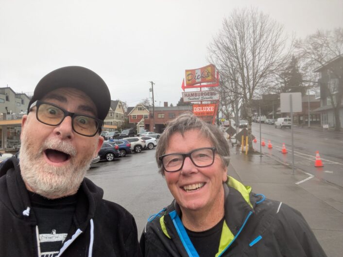 Dick’s Drive-In: Norman (of Motorcycho fame and founding member of The Vicious Cycles) and Jimmy Mac (right) filled up at the Original Dick’s Drive-In after a day at MOHAI. Don’t worry In-N-Out, you’re still my favorite. Somebody drove past and yelled, “I love Dick’s.” I’ve been told it is a Seattle tradition.